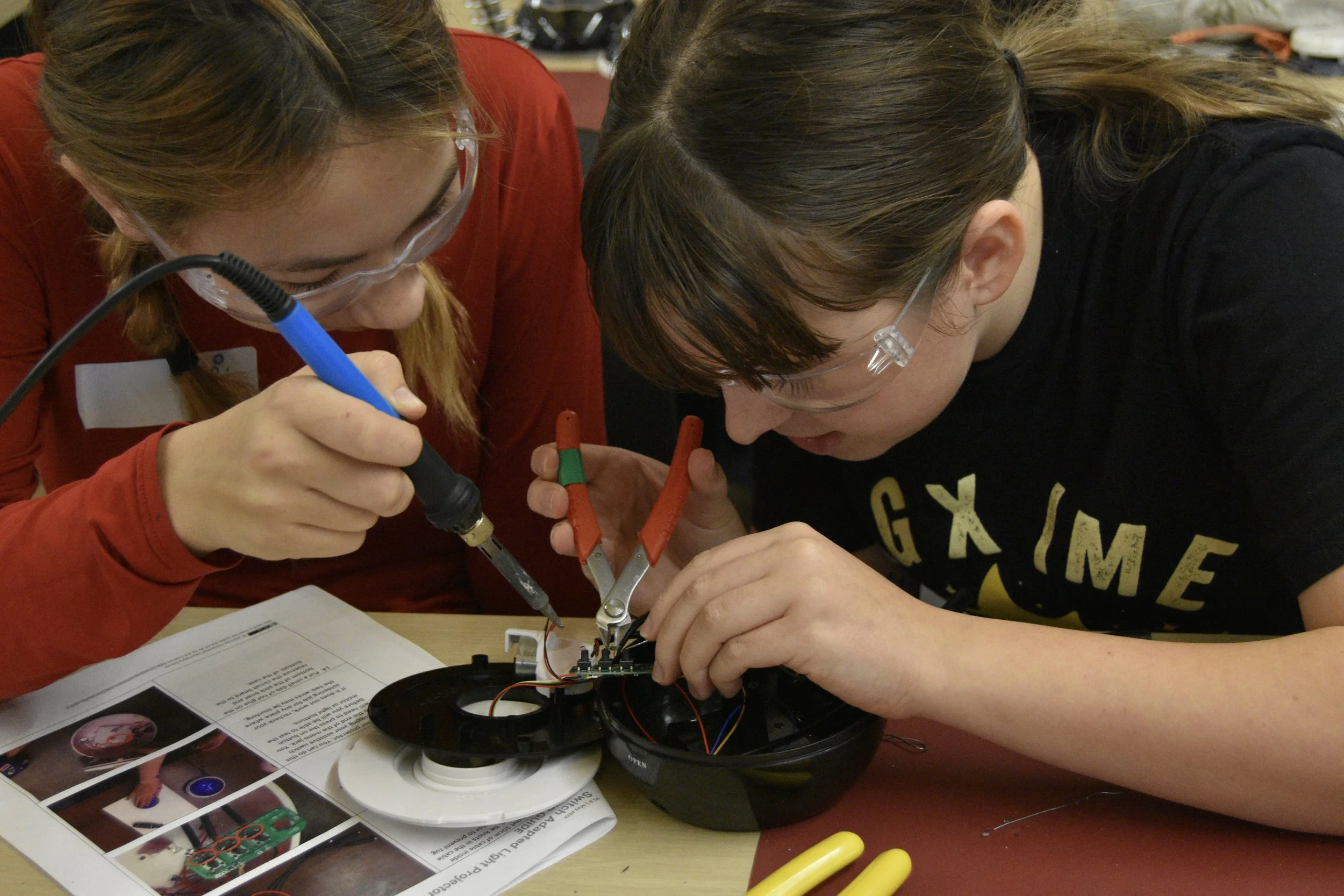 Neil Squire’s Makers Making Change staff and volunteers—experts at hacking battery-operated toys—guided participants through the process of taking toys apart and adding switch jacks. Attendees became toy hackers by learning from the best at Go ENG Girl!